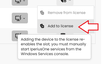 Additionally, the Iperius One services will be stopped, and to add the device back to the license it will be necessary to manually restart those services.