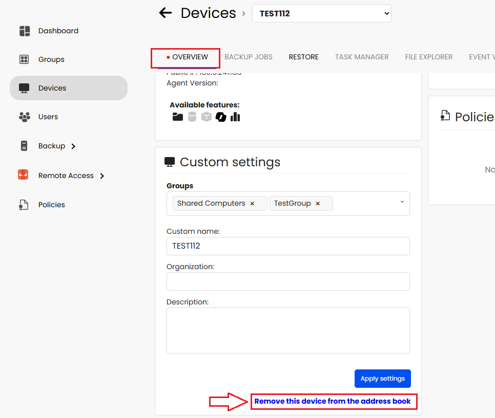 Please note: this operation removes one available slot from the Iperius One license, it does not remove the computer from the Iperius Remote Address Book. If you want to remove the computer also from the Iperius Remote Address Book, you must go to the Overview section and specifically click this option: