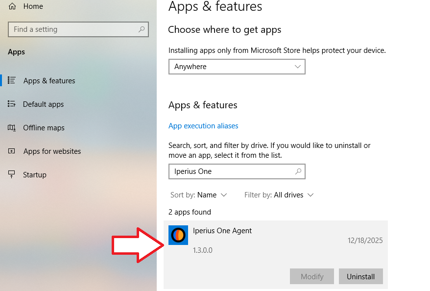 To completely uninstall Iperius One from the device, you must follow the standard Windows procedure for uninstalling a program: