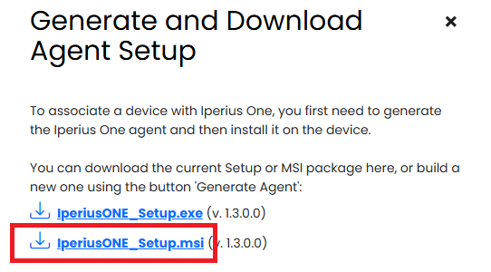 Select the option to generate the MSI package in order to install it in bulk on all devices: