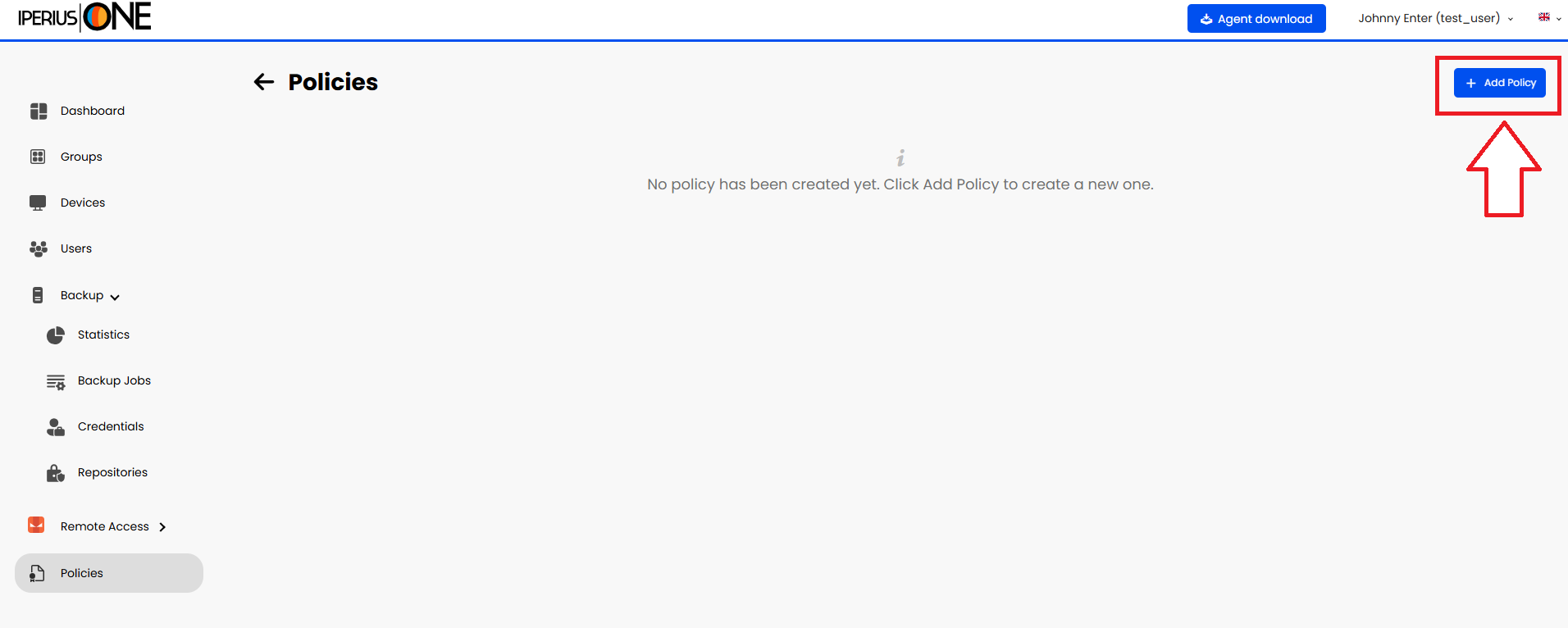 In this Policies section you can define security and backup policies to be set to devices or a group of devices.