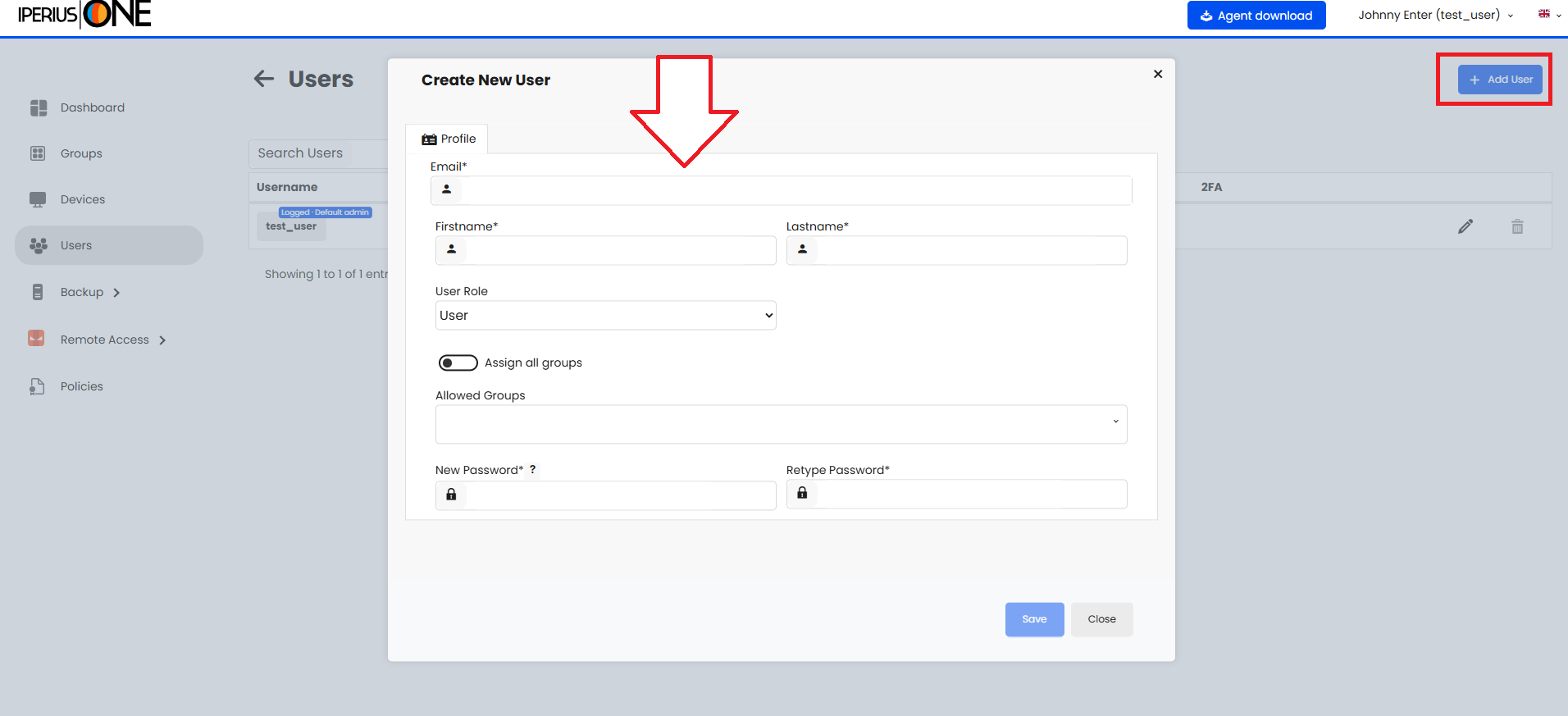To create a new user, click on “Add User” at the top right and fill in the various information requested on the screen.