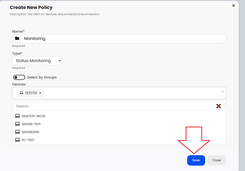 - Status monitoring: This policy allows you to notify the user if a device connects/disconnects