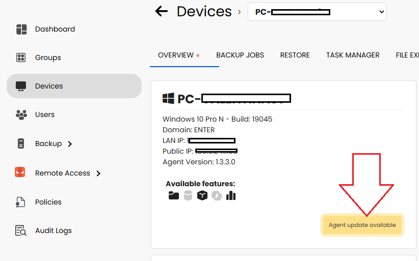 - From the Dashboard, directly select the device to update, and wait for the update to complete: