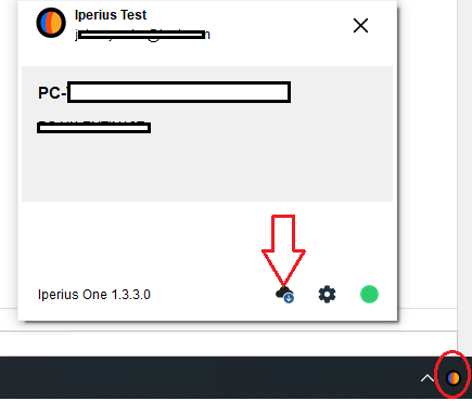 - Directly from the device, by clicking on the Iperius One icon in the Tray Bar: