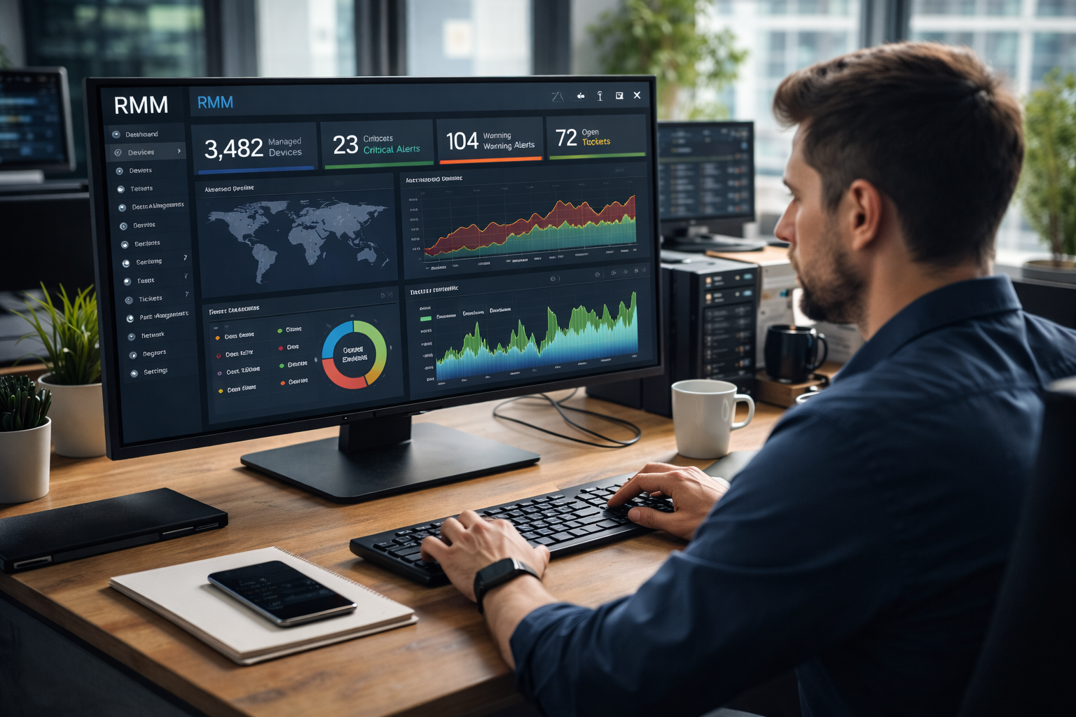Remote Monitoring and Management (RMM) tools are specialized software that allow MSPs (Managed Service Providers) and IT departments to remotely monitor client servers and workstations. A good RMM allows you to automate hardware/software monitoring, manage system updates, apply security patches, perform backups, and provide secure remote access , all from a single, centralized console. In addition to simplifying day-to-day maintenance, an RMM helps prevent problems and respond quickly in the event of failures, improving IT service efficiency.